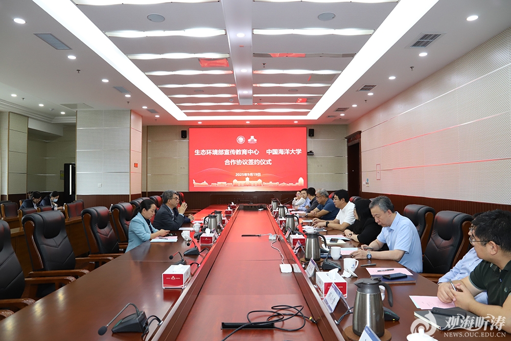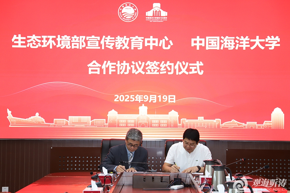 9月19日,中国海洋大学与生态环境部宣传教育中心合作协议签约仪式在崂山校区举行。生态环境部宣传教育中心党委委员、副主任林玉,学校副校长王厚杰出席仪式。